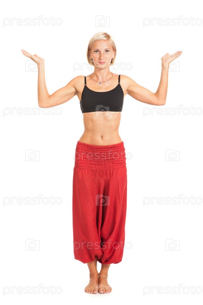 Практика йоги. Молодая женщина, изолированные на белом фоне