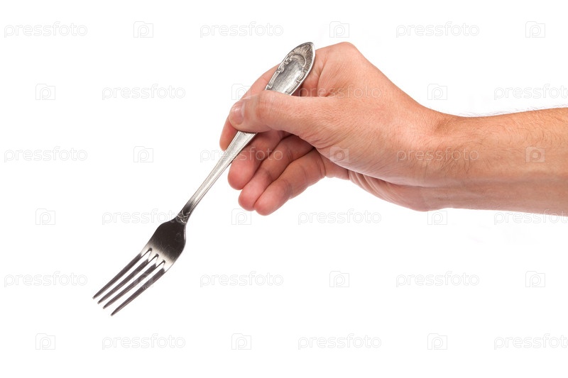 Руку с пустой металлический вилка