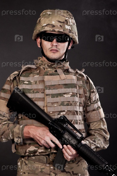 Современный солдат с винтовкой