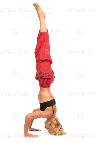 Практика йоги. Молодая женщина, изолированные на белом фоне