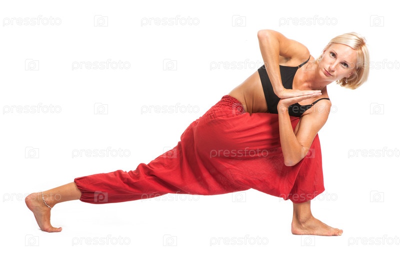 Практика йоги. Молодая женщина, изолированные на белом фоне