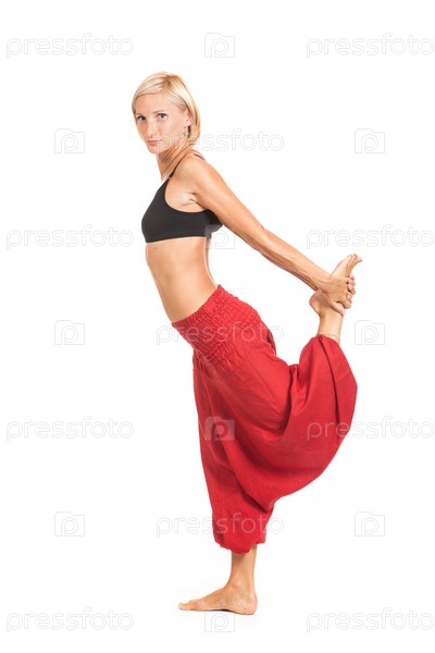 Практика йоги. Молодая женщина, изолированные на белом фоне