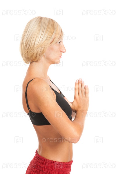 Практика йоги. Молодая женщина, изолированные на белом фоне