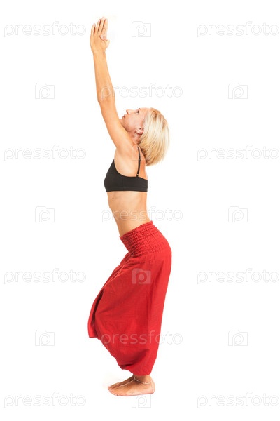 Практика йоги. Молодая женщина, изолированные на белом фоне
