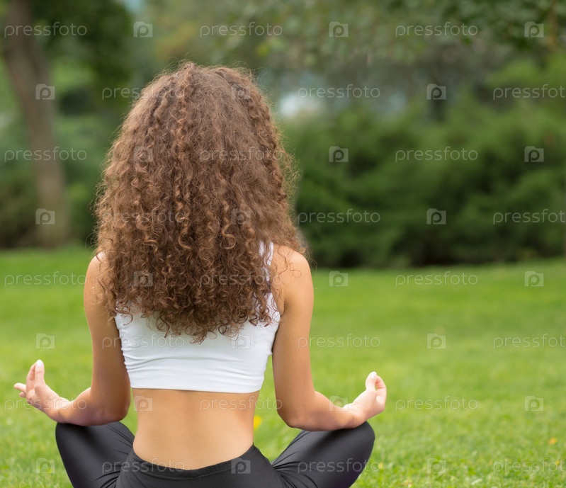 Красивая женщина, сидя спиной медитирует