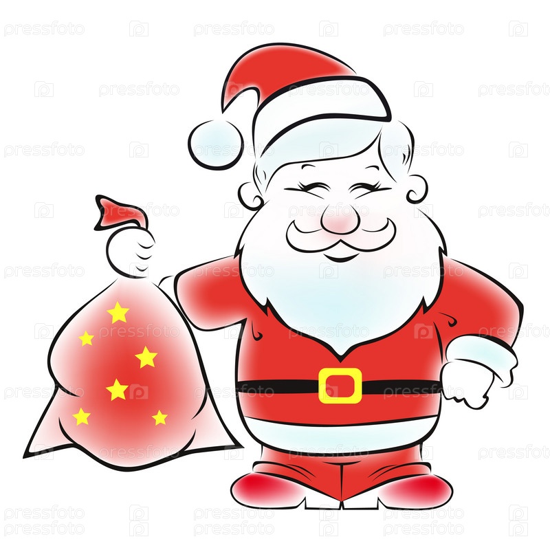 Санта Клаус с мешком подарков на белом фоне