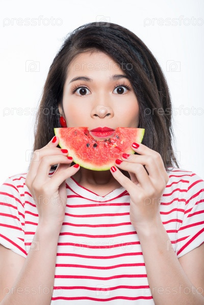 Женщина с кусочек арбуза