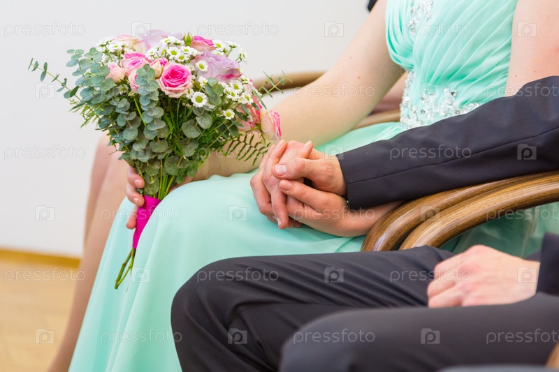 Свадебные пары, взявшись за руки