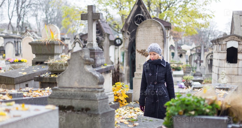 Одинокая женщина посещение могилы родственников