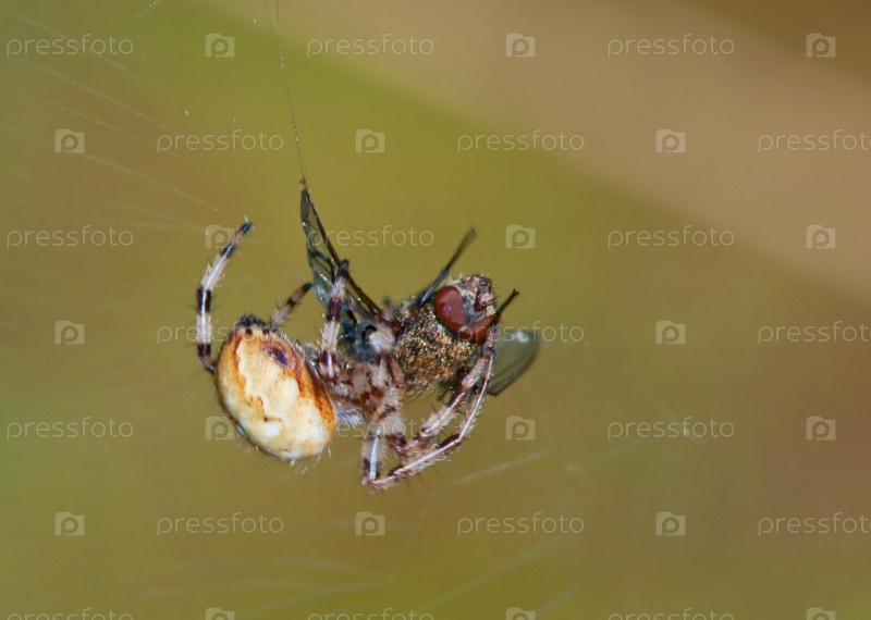 Паук-кругопряд поймал муху