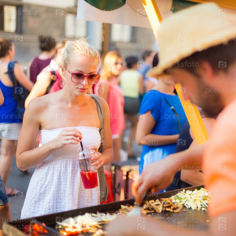 Женщина, покупая еду на продовольственном рынке
