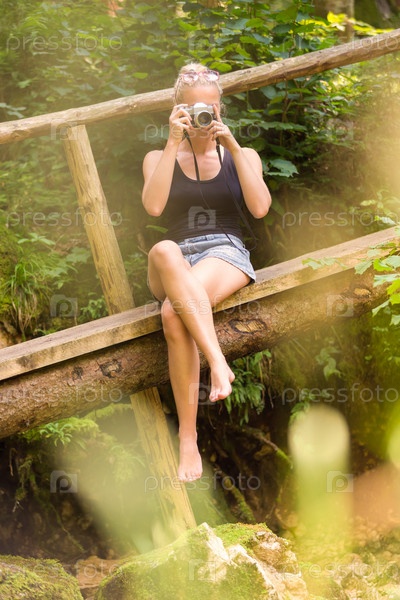 Женщина в природе с ретро камеры