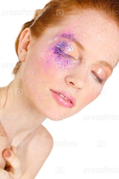 Красивая молодая женщина с сиреневыми блестками