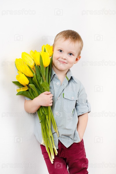 Мальчик с букетом цветов