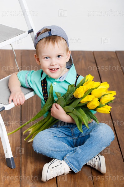 Мальчик с букетом цветов