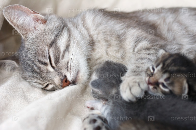 Мать-кошка питание котят