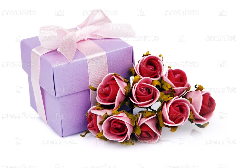 Красные цветы и фиолетовый подарочной коробке