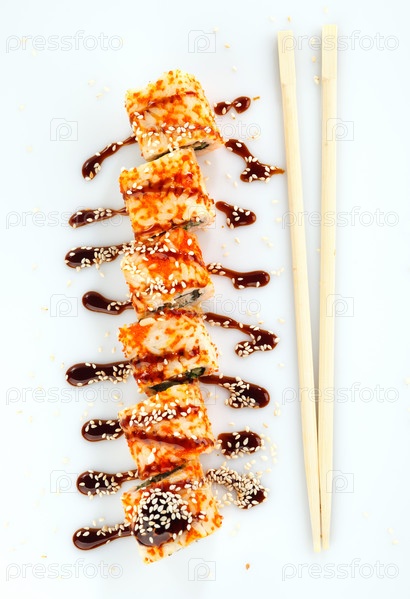 Японский суши роллы с соусом и палочками