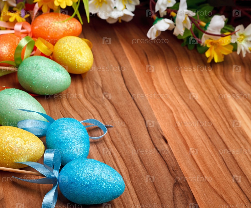 Пасхальная композиция и красочные яйца