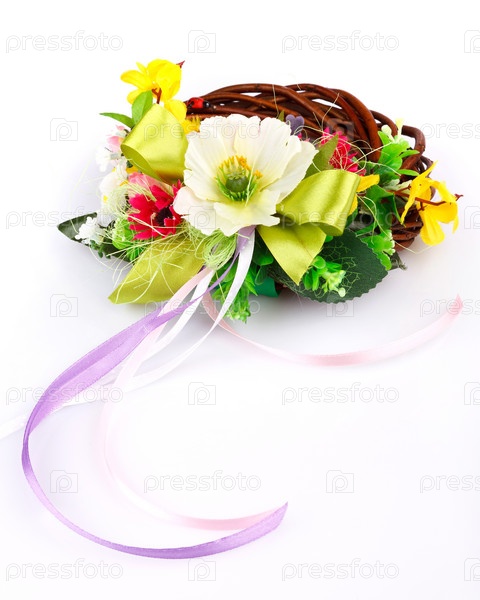 Венок из прутьев и цветочные композиции