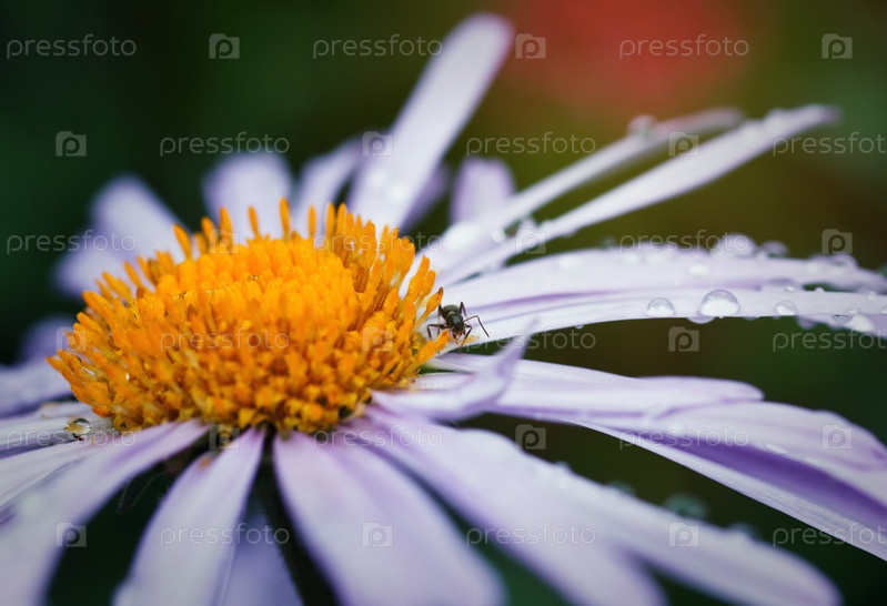 Прекрасная фиолетовый ромашка и муравей