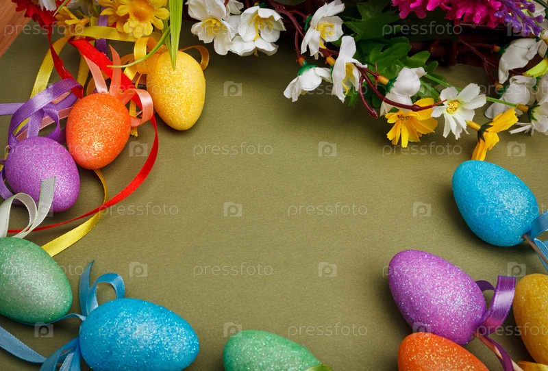 Пасхальная композиция с цветами и яйца