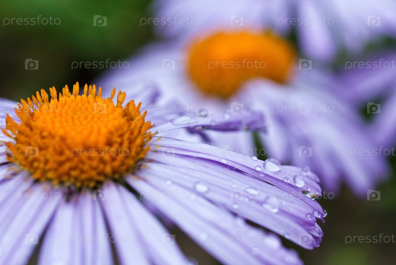 Цветы фиолетовые ромашки с каплями