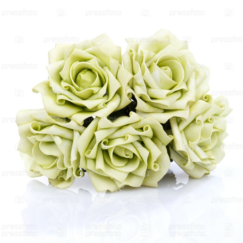 Искусственным букет зеленых роз на белом фоне