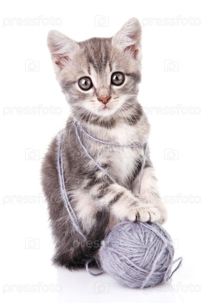 Красивый котенок серый шар
