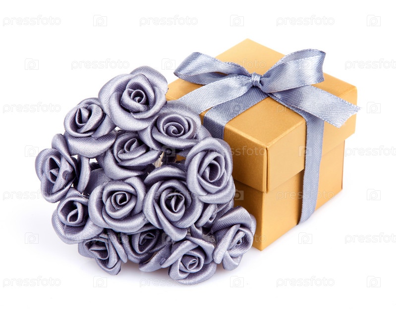 Серые цветы и желтый подарочной коробке