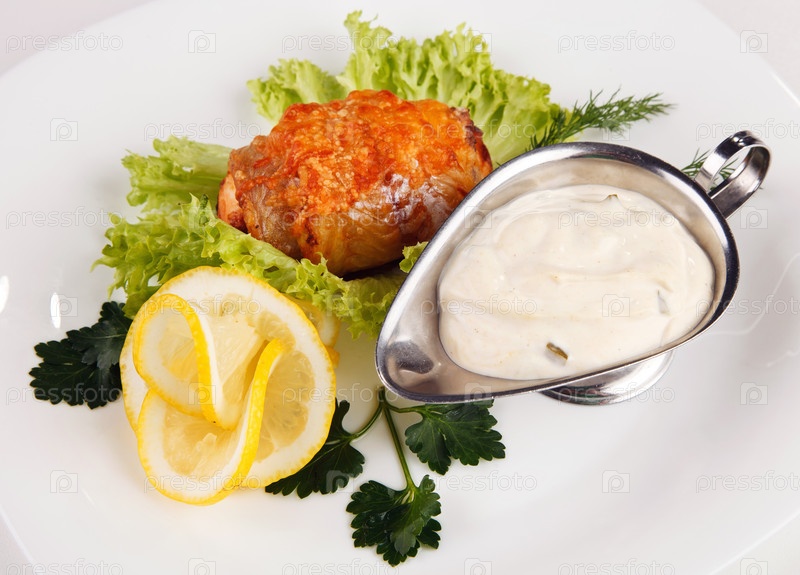 Мясо с соусом и салатом