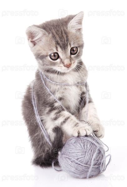 Красивый котенок серый шар