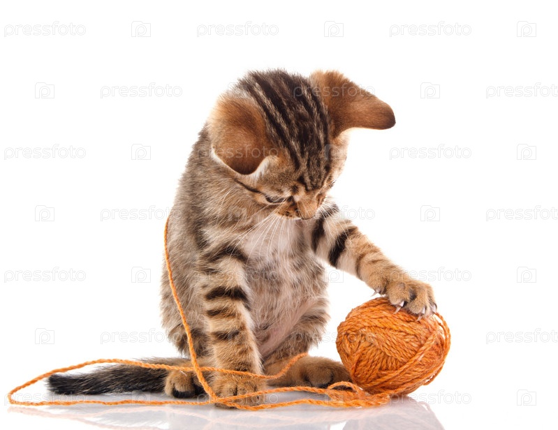 Игривый котенок с шариком коричневый