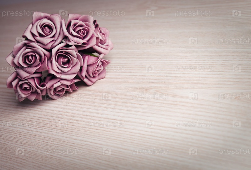 Букет из роз и фиолетовый на деревянные поверхности