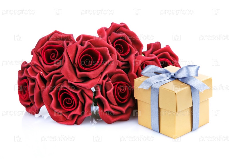 Красные цветы и золотой подарочной коробке