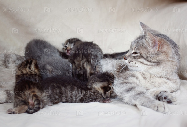 Мать-кошка питание котят