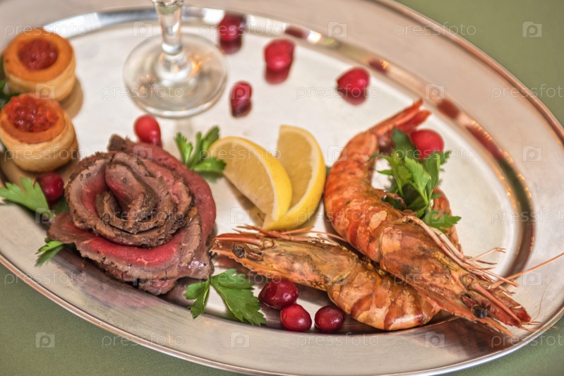 Жареные креветки и говяжье мясо