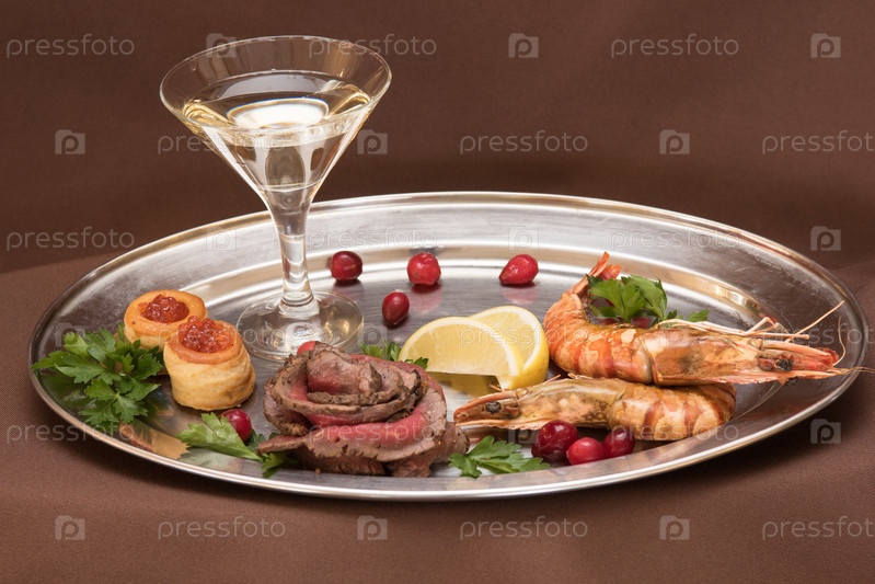 Жареные креветки и говяжье мясо