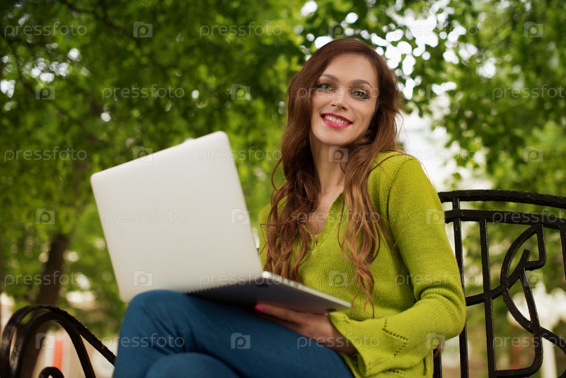 Женщина с ноутбуком в парке