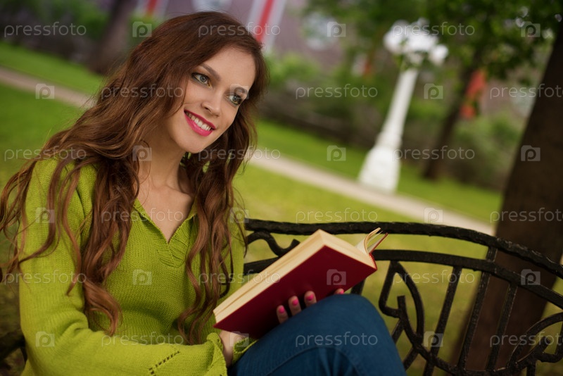 Красивая девушка с книгой в парке
