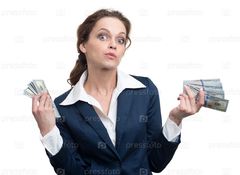 Молодая женщина с долларов в ее руках