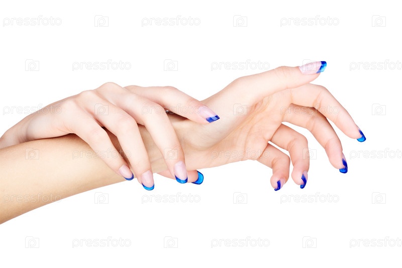 Женские кисти рук с французским маникюром на белом фоне