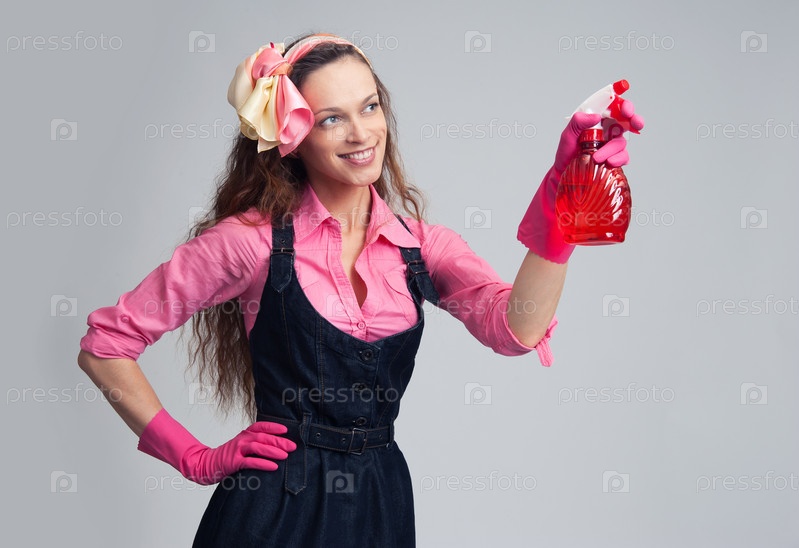 Молодая хозяйка готова для очистки