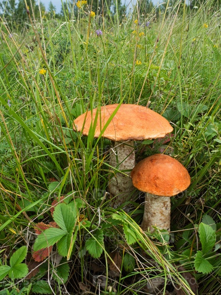 Лесные грибы в траве