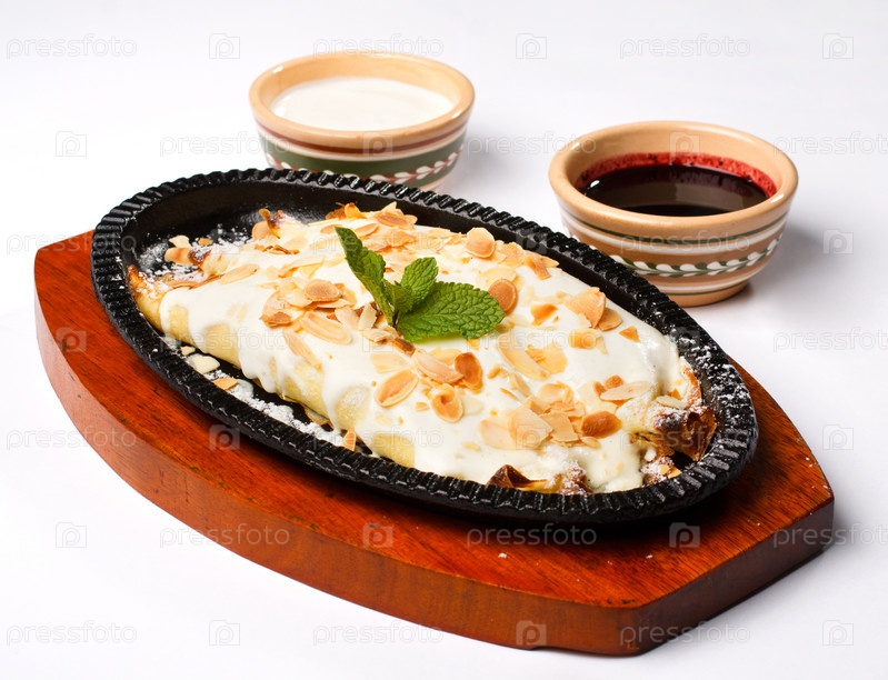 Яблочный пирог в ванили глазурь со сметаной и вишневым вареньем