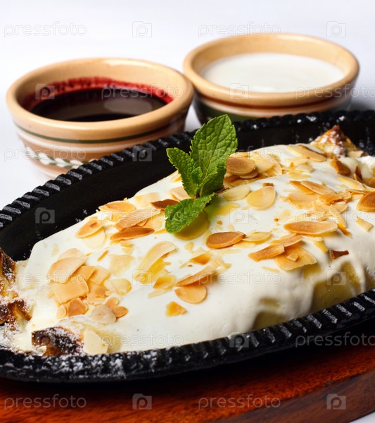 Яблочный пирог в ванили глазурь со сметаной и вишневым вареньем