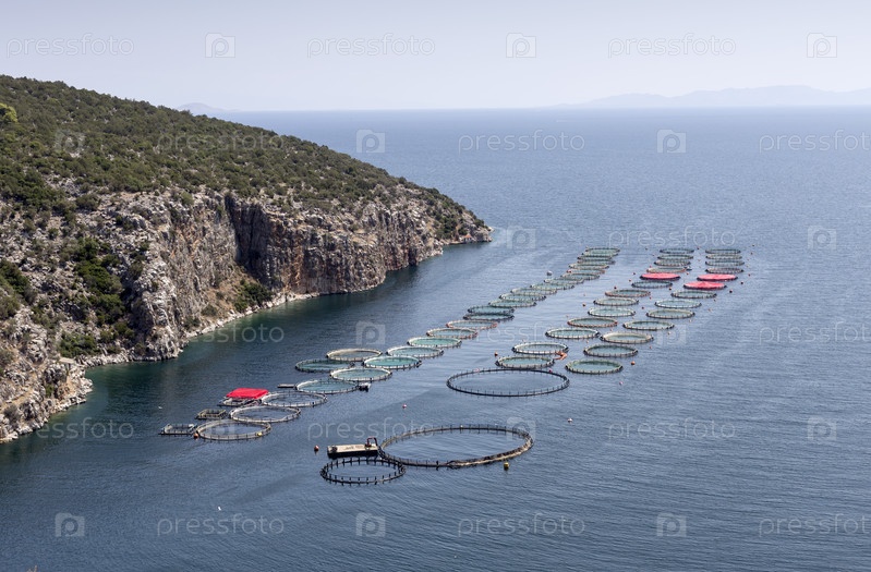 Залив Селонда, вид на рыбоводческое хозяйство (Греция,Пелопоннес)