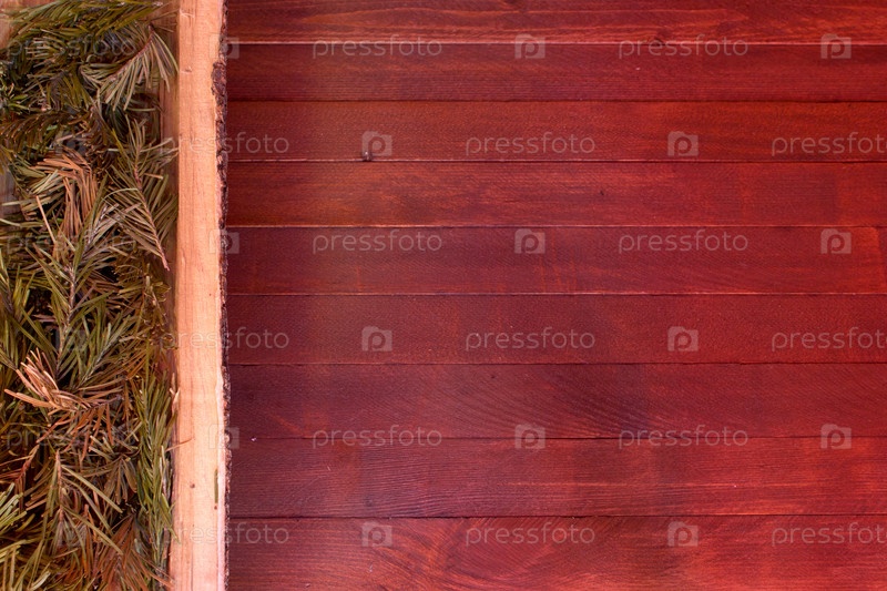 Деревянный фон с ветвями сосны