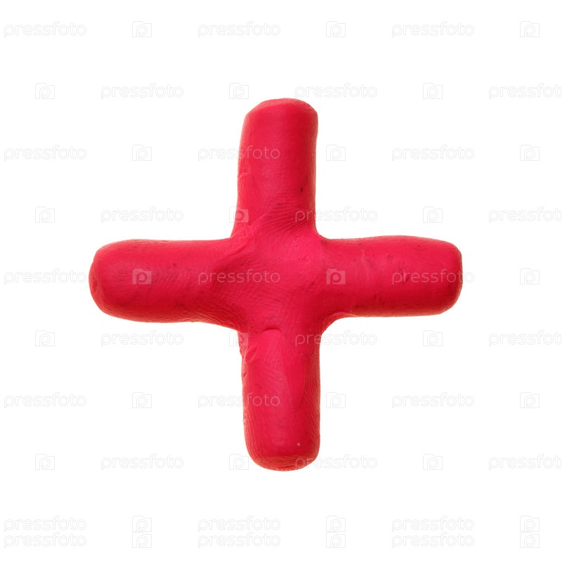 Плюс - пластилиновый символ операции сложения, изолированный на белом фоне