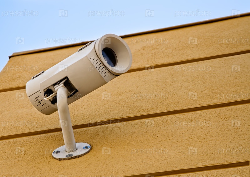 Видеокамера безопасности на внешней стене здания